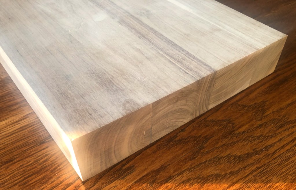 I am constructing a mini workbench from some reclaimed teak boards of an old desk. The workbench will be used (clamped) on top of a table or other workbench. When complete, it will include a vise and dog holes for securing work items. Part 1, this week, was getting the workbench top built. Future projects (weeks) will include building the vise and attaching legs. Stay tuned.
