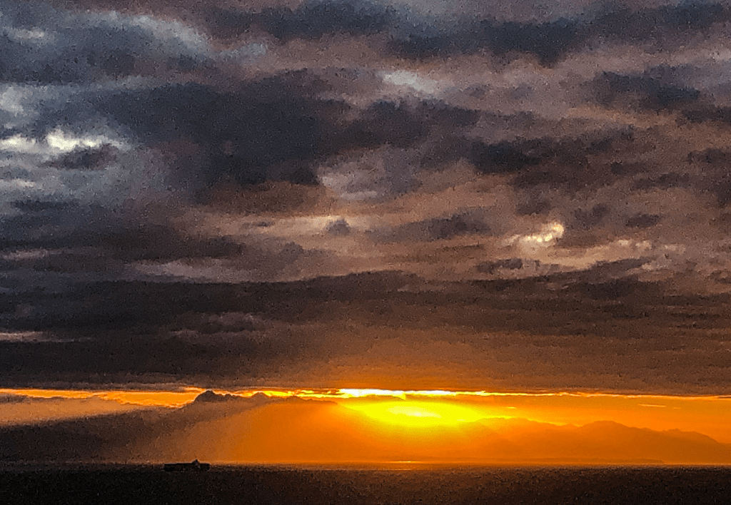 This week the KAPOW is a photo of a remarkable sunset looking down the Straits of Juan de Fuca from Whidbey Island. I was struck by the pixelation in the clouds that give the photo a watercolor painting feel. The crisp(er) elements retained in the brighter areas give the photo a dichotomy that adds some complexity.