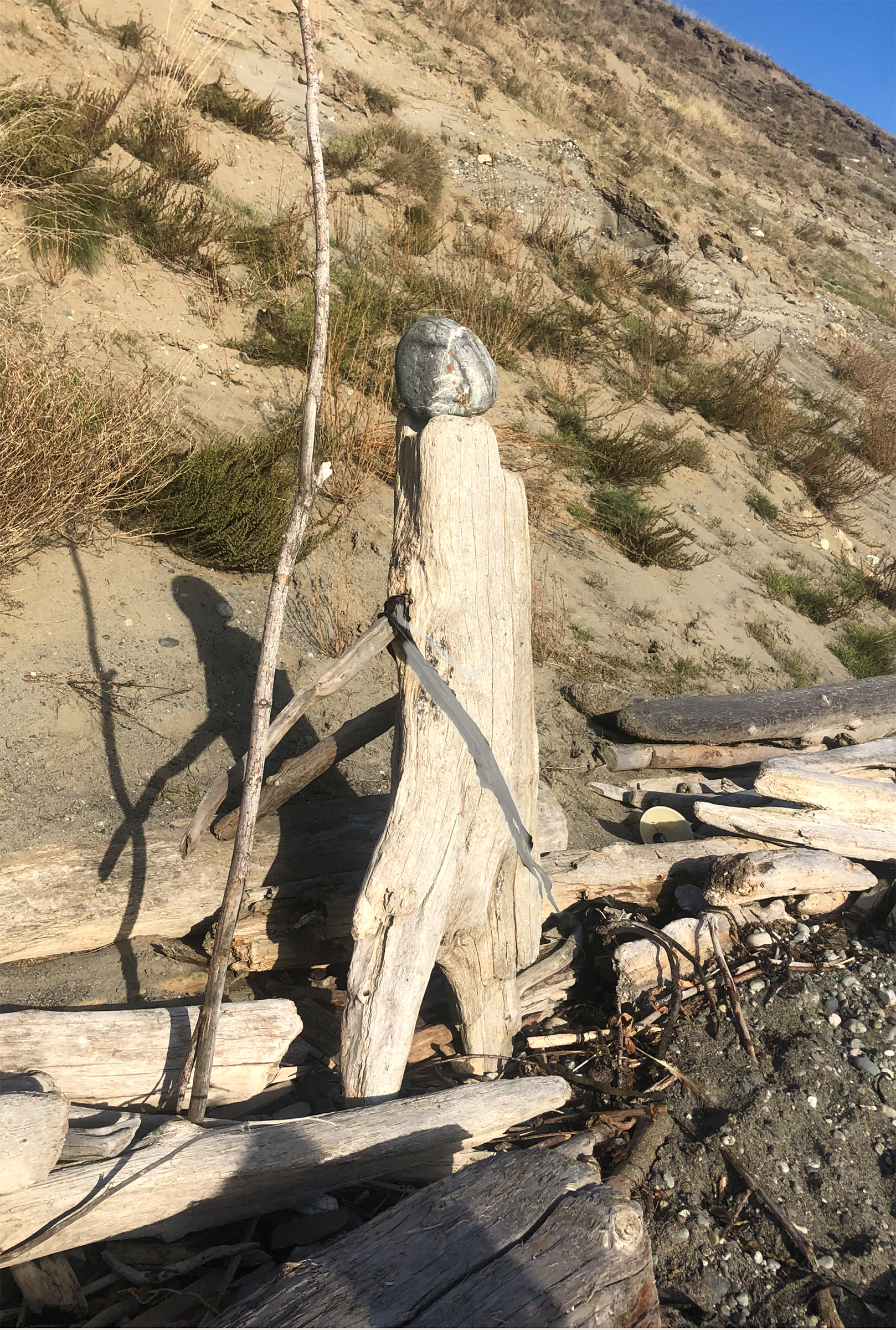 I encountered this quasi-cairn on a beach in Fort Ebey State Park on Whidbey Island.