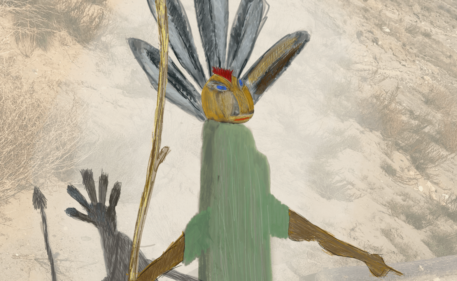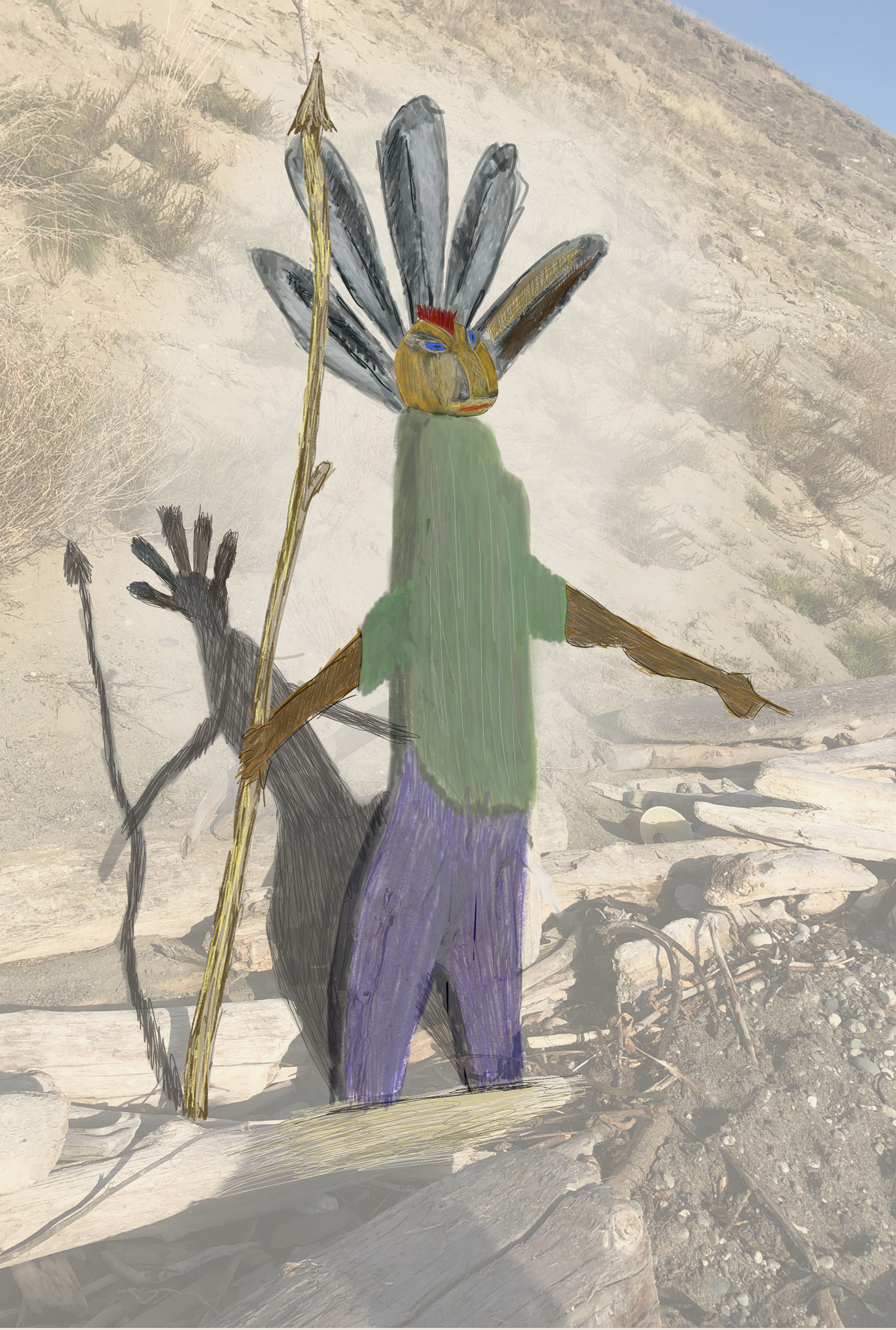 Recently, I have been noticing all sorts of things–trees, shrubs, and and other natural objects in the great outdoors–that appear if they have an animistic essence. This week’s KAPOW is a digital painting enhancement of a Beach sENTry.