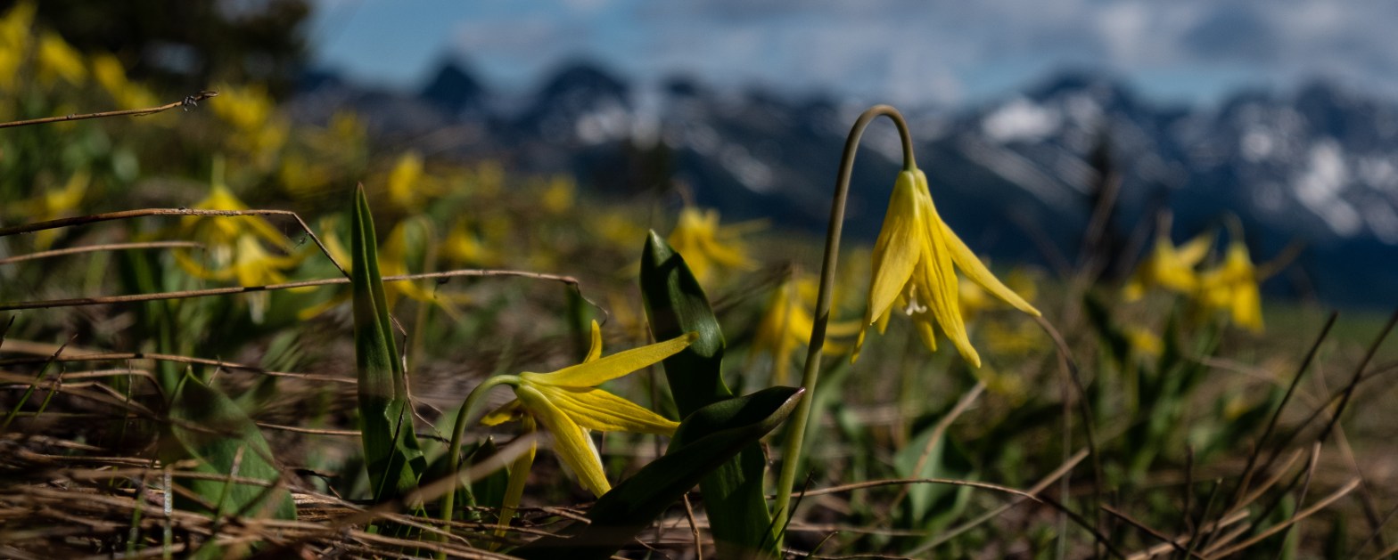 The bustling field of Avalanche Lilies up on Tyler Ridge had not yet fully inverted, but made for a spectacular site—all askew in various directions. That should be Mount Townsend and Buckhorn Mountain blurred out in the background. Taken roughly from: 47°54’08.5″N 123°09’21.2″W.
