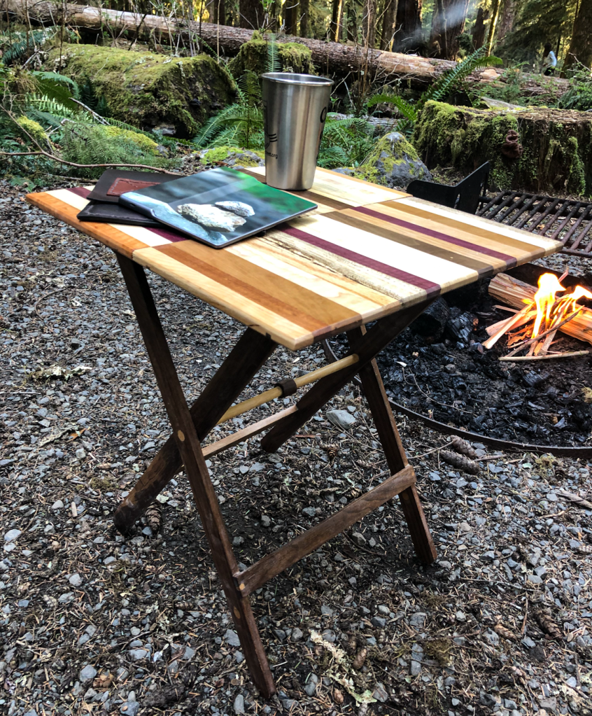 Several weeks ago I built a fold-up camp table. The table design is based on a fold-up table that my father builds. The design is great, small, and super useful at camp. I have one of my father’s table (picture below) and built this one.