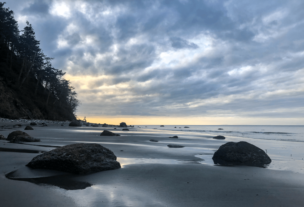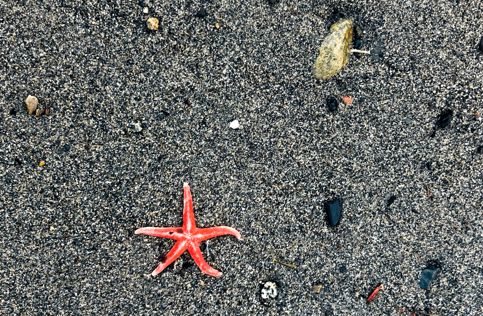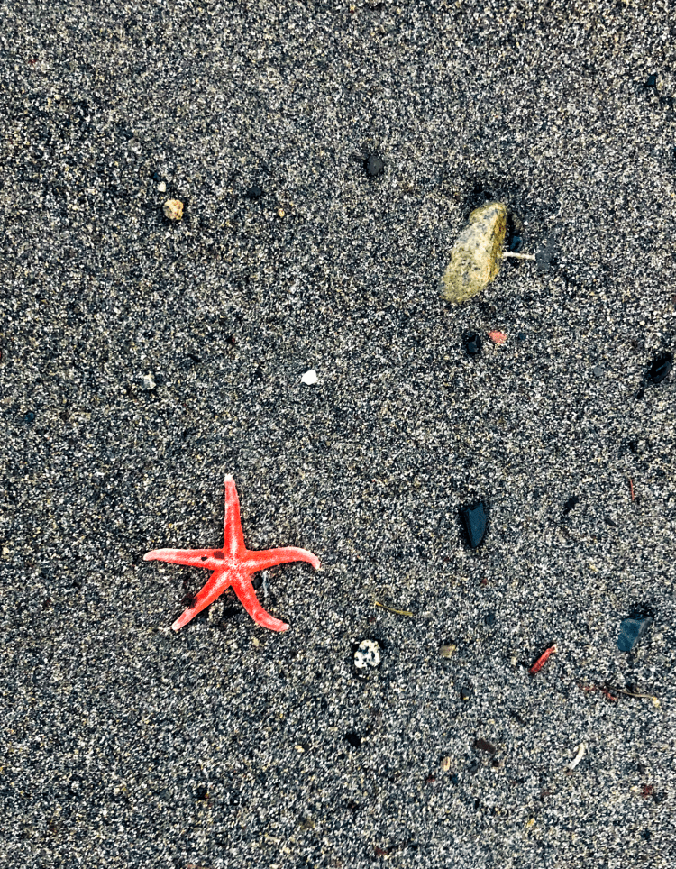 A Sea Star on the beach. Along the Strait of Juan de Fuca/Salish Sea, we do not see as many sea stars as along the open Pacific Ocean, so this little guy was a welcome sight.